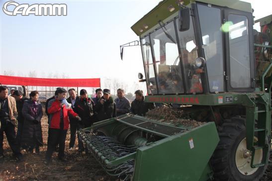 上午10时在衡水市冀州县,4MG-275型棉秆联合收割机进行了现场作业演示,棉秆机轻松自如的将一丛丛棉花秸秆捡拾粉碎,给与会代表留下了深刻的印象。此次演示会全方位展示了棉秆联合收割机的性能和工作效率,演示会取得了圆满成功,得到了与会领导、经销商及用户的一致好评。姚春生处长、宁学贵副秘书长充分肯定棉杆联合收割机的效果,并对以后的农作物秸秆机械化收获作出了重要指示。