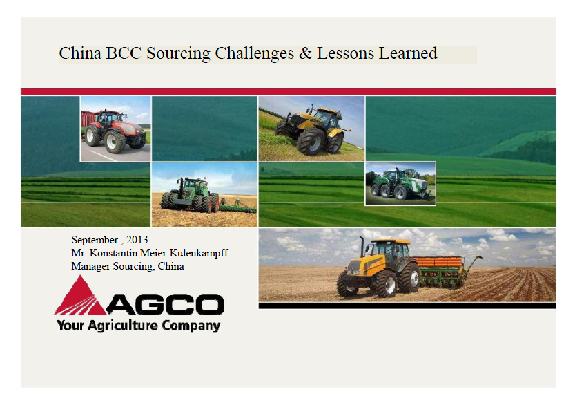 分享了爱科公司在全球范围内进行零部件采购的标准和经验,重点介绍了爱科中国零部件供应商。 [详细]